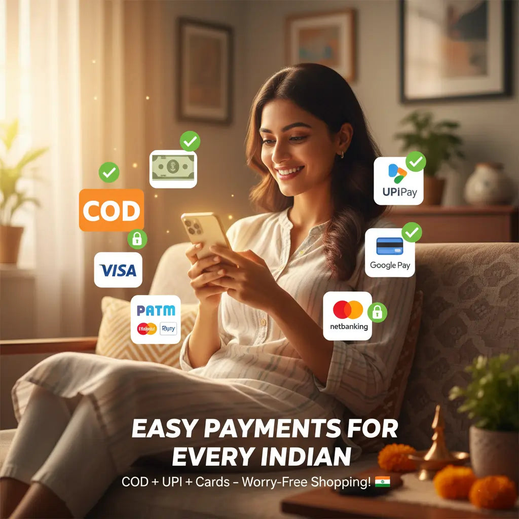 Whether you prefer Cash on Delivery (COD) or secure UPI/EMI, we make it simple. No hidden charges, no payment failures—just a smooth checkout that respects your hard-earned money.